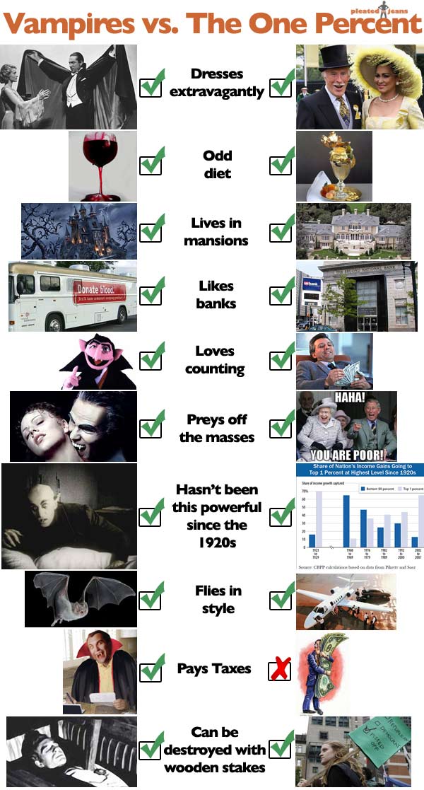 pleatedjeans: vampires vs. the one percent. (Source: http://stream.pleated-jeans.com/) Rate this:Share this: Click to email a link to a friend (Opens in new window) Email Click to share on Reddit (Opens in new window) Reddit Click to share on X (Opens in new window) X Click to share on Facebook (Opens in new window) Facebook Click to print (Opens in new window) Print Like Loading... Related November 23, 2011September 11, 2015 / Wist / Leave a comment